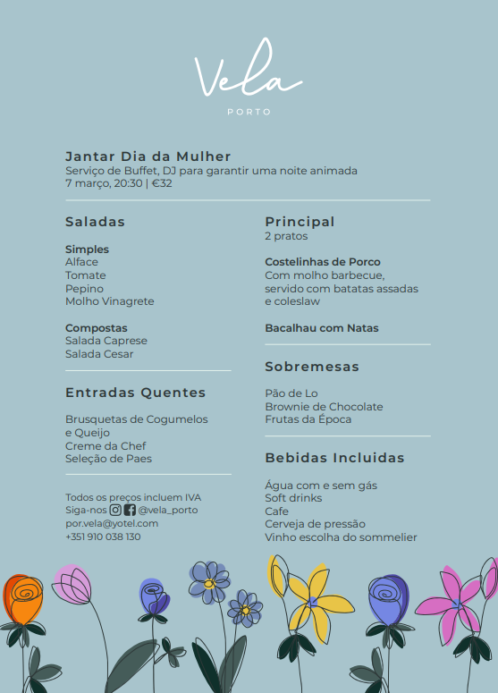 O Vela Porto quer-lhe oferecer uma noite inesquecível para celebrar com as suas amigas este dia tão especial. É a melhor oportunidade para reunir amizades, partilhar memórias. Prepara-se para uma autêntica Girls’ Night Out, com DJ Set ao vivo, ambiente vibrante e uma seleção de sabores que tornam cada momento ainda mais especial!